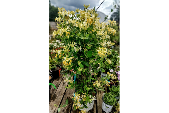 Scentsation Honeysuckle—This non-invasive honeysuckle vine is prized for Its long-lasting, floriferous white and yellow flowers that bloom from mid-spring to late summer. It is deer resistant and t...
